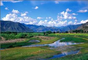 巴松措位于距林芝地区工布江达县50多千米的巴河上游的高峡深谷里,是红教(藏传佛教宁玛派)的一处著名神湖和圣地。虽然巴松错深藏在交通闭塞、远离城镇的山沟里,但它却以其林木繁茂和群山耸立中的那一池碧水而广为外界所知,成为林芝地区最早为人所知的风景区之一。水清澈见底,四周环绕的雪山倒映其中。沙鸥、白鹤浮游湖面,湖水透明可见游鱼如织,情趣怏然。每到春季,湖四周群花烂漫,雪峰阵列并倒影湖中,景色宜人至极。秋季万山红遍,层林尽染,天空碧蓝如洗,火红的枫叶折射灿烂的阳光,倒影在碧蓝的湖面,景色美不胜收。距岸边大约一百米处有一座小岛名为扎西岛,传说该岛是“空心岛”,即岛与湖底是不相连而漂浮在湖水上的。小岛上有唐代的建筑“错宗工巴寺”,是西藏有名的红教宁玛派寺庙,建于唐代末年,距今已有1500多年的历史了。错宗寺为土木结构,上下两层,殿内主供莲花生、千手观音和金童玉女。寺南有一株桃和松的连理树,春天时,桃花与青松相映,煞是好看。