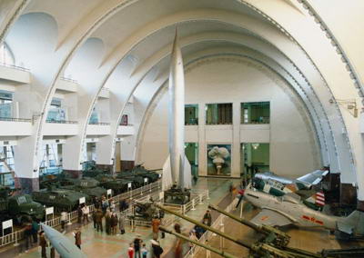 抗美援朝战争馆,位于展览大楼东三楼,主要展示1950年10月至1953年7月,中国人民志愿军响应中共中央“抗美援朝、保家卫国”的号召,高举和平与正义的旗帜,跨过鸭绿江,同朝鲜人民一道抗击美国侵略者,经过两年零九个月的艰苦斗争,终于以劣势装备打败了现代化装备的以美国为首的“联合国军”的历史。