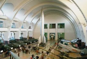 兵器馆,位于展览大楼北侧和东西兵器广场,主要陈列中国人民解放军在历次革命战争中和建国后海防、边防、空防斗争中曾经使用和缴获的,以及中国自行研制的部分武器。陈列的兵器分为轻武器、火炮、装甲车辆、导弹、舰艇、飞机等6个部分。