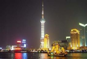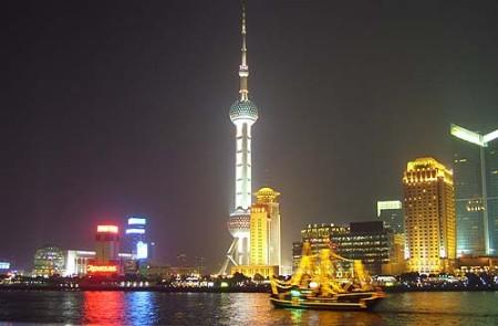 上海东方明珠广播电视塔座落于上海黄浦江畔、浦东陆家嘴嘴尖,以其468米的绝对高度成为亚洲第二、世界第四之高塔。东方明珠塔卓然秀立于陆家嘴地区现代化建筑楼群,与隔江的外滩万国建筑博览群交相辉映,展现了国际大都市的壮观景色。东方明珠塔集观光餐饮、购物娱乐、浦江游览、会务会展、历史陈列、旅行代理等服务功能于一身,成为上海标志性建筑和旅游热点之一。东方明珠塔十一个大小不一、错落有致的球体晶莹夺目,从蔚蓝的天空串联到如茵的草地,描绘出一幅“大珠小珠落玉盘”的如梦画卷。东方明珠塔凭借其穿梭于三根直径9米的擎天立柱之中的高速电梯,以及悬空于立柱之间的世界首部360度全透明三轨观光电梯,让每一位游客充分领略现代技术带来的无限风光。享誉中外的东方明珠空中旋转餐厅位于东方明珠塔267米上球体,以其得天独厚的景观优势、不同凡响的饮食文化、宾至如归的温馨服务,傲立于上海之巅,作为亚洲最高的旋转餐厅,其营业面积达到