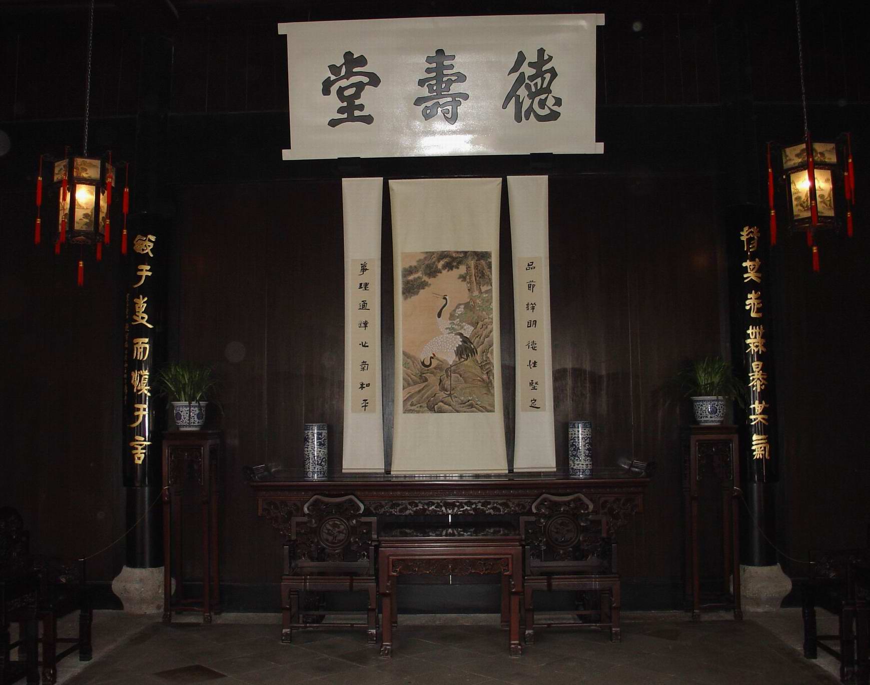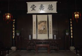 在新建的鲁迅纪念馆陈列大厅的东首,就是鲁迅祖居——周家老台门,它坐北朝南,前临东昌坊口,后通咸欢河,西接戴家台门,与三味书屋隔河相望。老台门占地 3087平方米,青瓦粉墙,砖木结构,是一座典型的封建士大夫住宅。