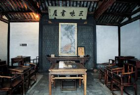 三味书屋是清末绍兴城里著名私塾。鲁迅12岁至17岁在这里求学。鲁迅的座位,在书房东北角,一张硬木书桌是鲁迅使用过的原物。有一次鲁迅因故迟到,受到先生批评,就在书桌右上角刻“早”字以自勉。塾师寿镜吾(晚署镜湖),是一位方正、质朴和博学的人。他的为人和治学精神,给鲁迅留下难忘的印象。三味书屋是三开间的小花厅,本是寿家的书房。寿镜吾在这里坐馆教书达60年,从房屋建筑到室内陈设以至周围环境,基本保持当年原面貌。三味书屋后面有一个小园,种有两棵桂树和一棵腊梅树。