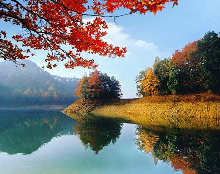 千岛湖,是一个美丽的湖 。湖中那1078个岛屿,姿态各异,风姿绰约。春游湖上,布满山花的岛屿,是一个个天真烂漫的村姑;夏日游湖,人们多想在这碧波中逐浪畅游;秋山红叶,使人想起"霜叶红于二月花"的诗句,雪满湖山,松挺山崖,又是一幅王维笔下的诗画图。
