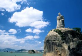 水操台是郑成功为收复台湾,操练水师的遗址。巨崖上“闽海雄风”四个字,圆润饱满,酣畅刚健。右前侧另一巨石上,刻着郑成功手书的一首五绝:“礼乐衣冠第,文章孔孟家。南山开寿城,东海酿流霞。”据说,这首诗是临摹郑成功的笔迹而刻的,底下还刻着“郑森私印”和“成功”两方印章,站在水操台,总会令人联想当年郑成功在此处指挥若定,受江上挂旗猎猎,百舸争游,壮士们为祖国的统一而摩拳擦掌的壮观的场面。