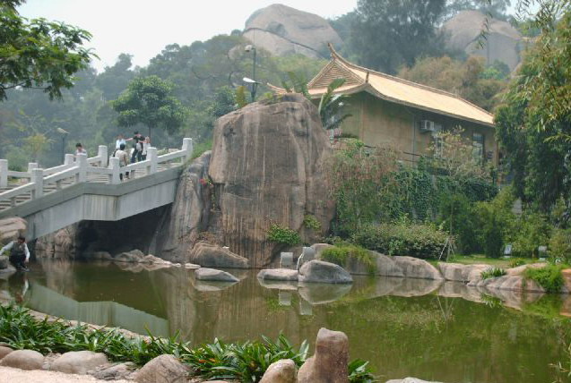 日光岩寺,俗称“一片瓦”,实际是一个天然石洞,以一巨石为顶,后依山形地势建起寺庙的,具体时间是明朝正德年间万历十四年。有关日光岩名称的来历有两种传说:一是自然地理传说,因每天凌晨,朝阳从厦门五老峰后升起,日光岩最先淋浴在阳光中,故得名为日光岩,寺庙称日光岩寺;一是历史传说,当年郑成功来到晃岩(日光岩别名),见这里的景色远胜于日本的日光山,便把晃字拆开,就成了日光岩。日光岩寺屡毁屡建,清同治年间,建圆明殿,祀弥勒,并在庙前建一八角亭,上挂“日光寺”匾。解放后,圆明殿改为念佛堂,大雄宝殿是1917年建的。改革开放后,落实宗教政策,日光岩寺得到政府的扶持,接受海内外十方信善的捐赠,大兴土木,翻建了大雄宝殿,新建了山门、钟鼓楼。旅游平台、法堂、僧舍、小卖部和膳堂,寺庙焕然一新。日光岩寺是一座精巧玲珑的寺庙,大雄宝殿、弥勒殿对合而设,是全国唯一。日光岩寺环境优美,历代高僧不断,著名的弘一法师于1936年6月曾在此闭关8个月。