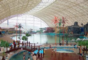 走进大英死海旅游度假区的大门,首先映入眼帘的是中东风格的独特建筑风格和充满热带风情的园林景观。再看已先到的游客,或着“沙滩装”在园区悠闲漫步;或穿着五彩缤纷的泳装在“海中漂浮、嬉戏,在躺椅上享受着阳光浴……你的心中一下子有了一种置身南中国或东南亚海滨的感觉,不需要赶行程,不需要想下一站是怎样的风景,不论你到来的旅途是否漫长,这一刻有一个声音在告诉你:停下来、住下来、放松下来,好好地享受一下大英死海带给你的悠闲时光。