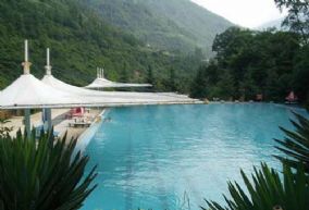 目前除投资500万元兴建古尔沟温泉标准游泳池外,还有大小浴室30多个,与之配套的服务设施基本具备,形成了吃、住、行、游、购、娱服务“一条龙”。