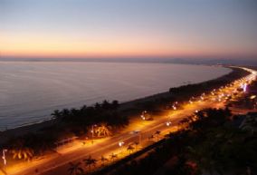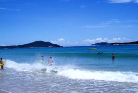 长长海湾,分为三段,紧连市区一段为游乐观光漫游区域,稍远为公共海边泳场和海上活动区域,再远是拥有一批度假村的休闲度假区域。