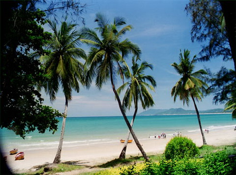 三亚湾度假区东起三亚港,二十里长的滨海大道依湾绵延,椰树成林西行延伸至天涯湾。人道十里银滩美,可比起这二十里椰林画廊,就大巫见小巫了!放眼望去,东、西玳瑁洲(玳瑁岛)(俗称东岛、西岛)两座小岛浮于海 中,相邻而望,东岛驻军戒备森严,西岛渔家出入自由,相邻的小岛承担的却是不同的使命。