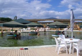 田园温泉 泉眼处水温60度,池水42度,共有88个浴池,可根据个人需要沐浴特色浴。中餐厅江聚了的有的海南风味特色菜,注重突出了田园风味。客房为日式的榻榻米,内设有温源池。