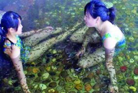泥 浴: 温泉和热矿泥,含有60余种人体必需的微量元素,对治疗风湿、类风湿、关节炎、肩周炎、神经痛和骨折后遗症等60余种疾病和健体强身、减肥美容均具有独特的辅助作用。